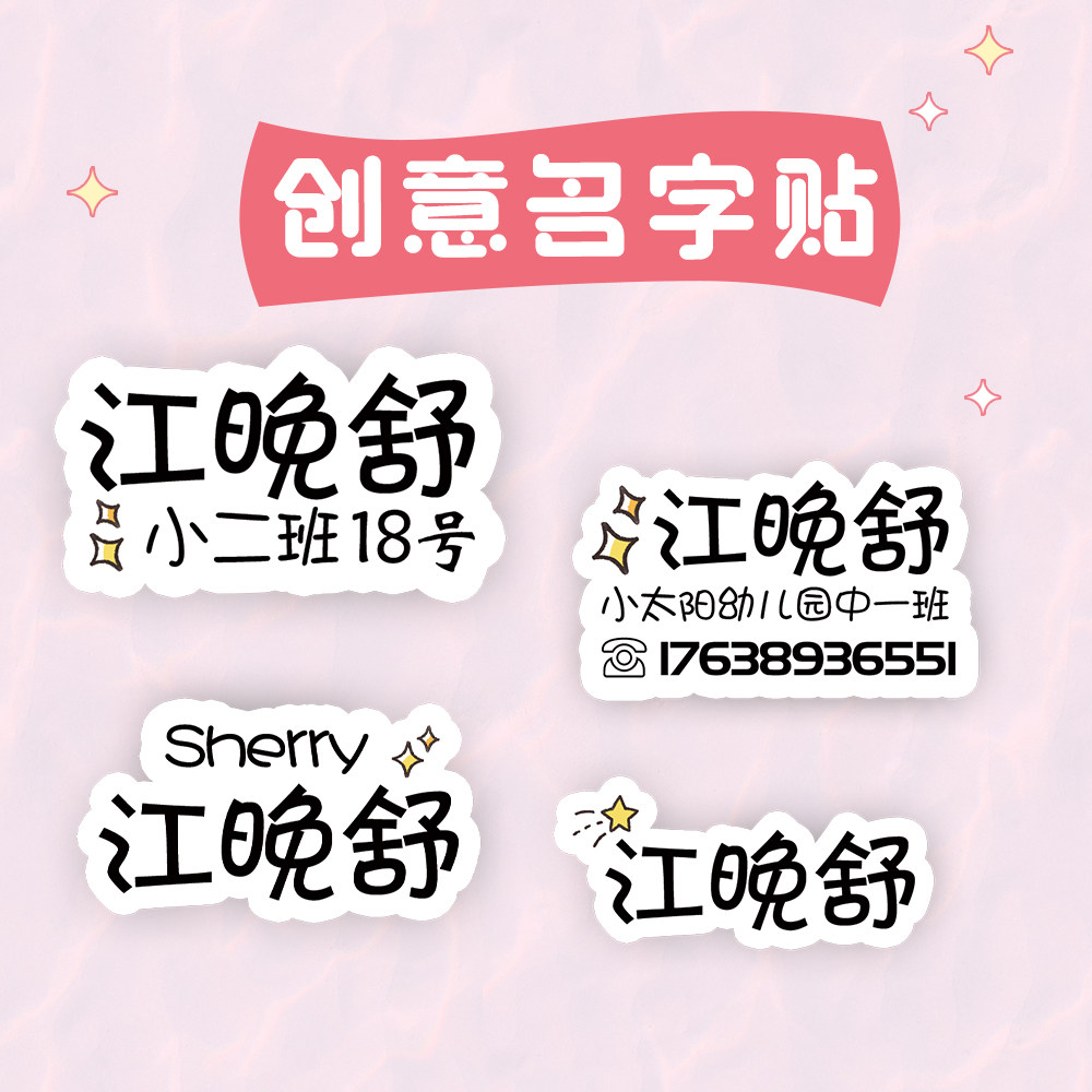 个性 创意透明水防撕名字贴姓名贴定制贴纸名字条贴名字幼儿园