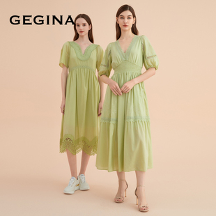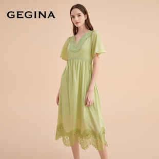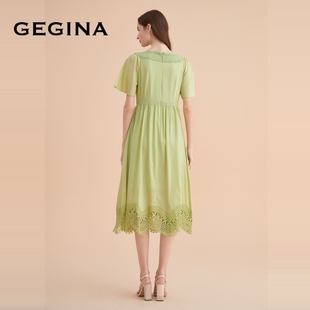 蕾丝真丝连衣裙中长款 GEGINA吉吉娜新款 女刺绣女裙 桑蚕丝