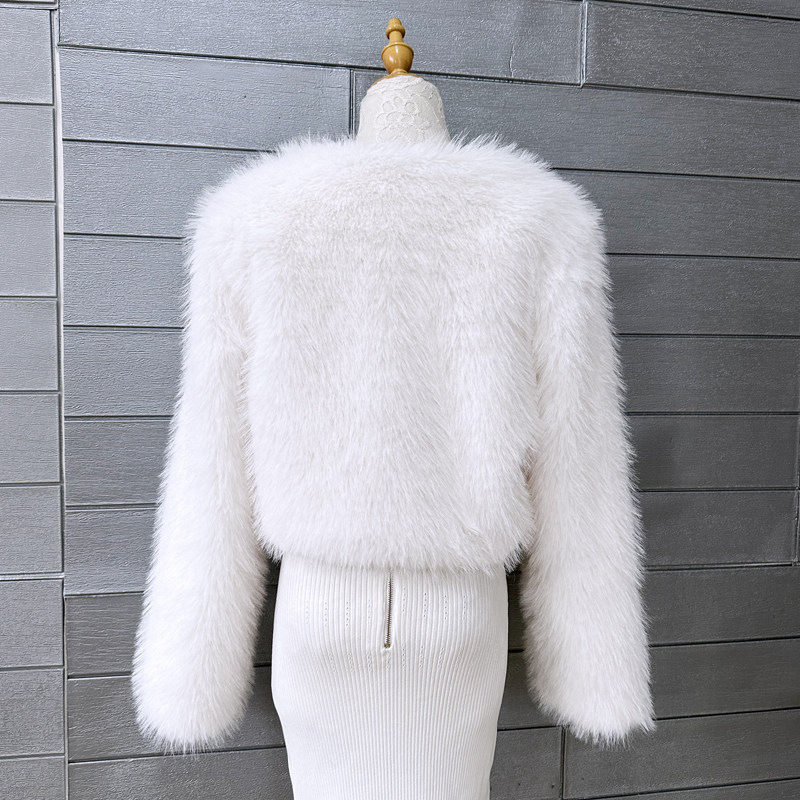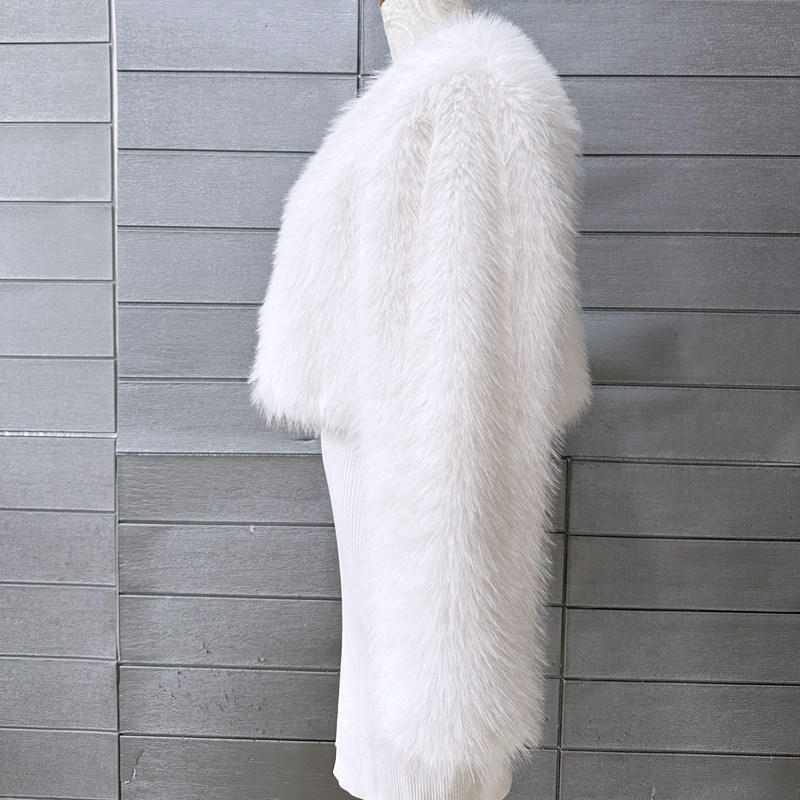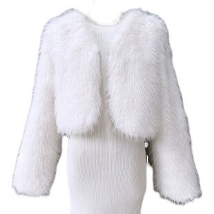 婚纱礼服搭配 秋冬女士白色简洁百搭小外套毛毛绒皮草开衫 披肩