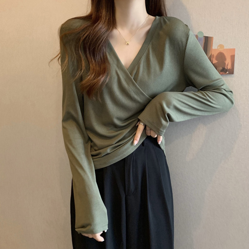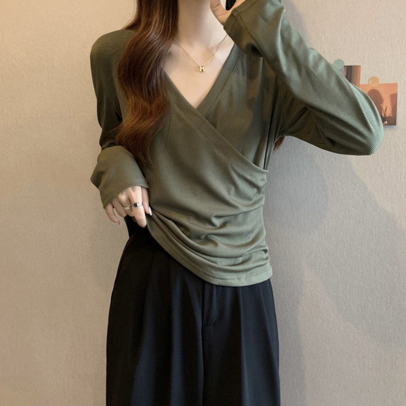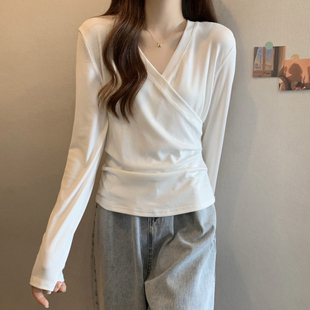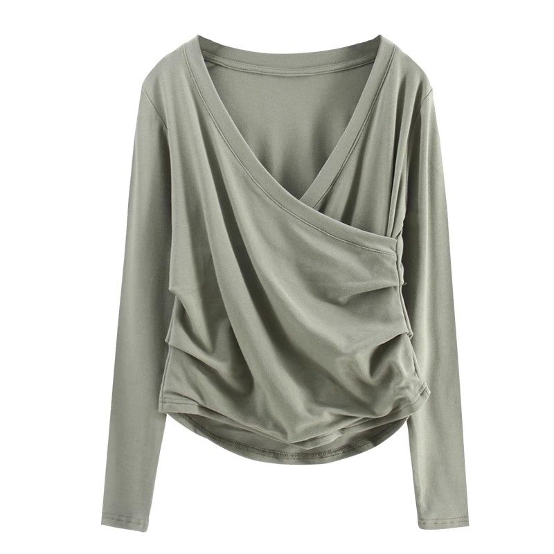 外出显瘦喂奶服打底衫 t恤辣妈款 不规则交叉长袖 哺乳上衣秋冬大码