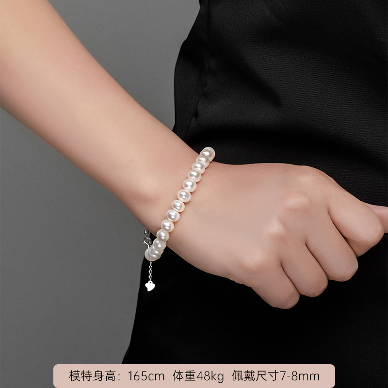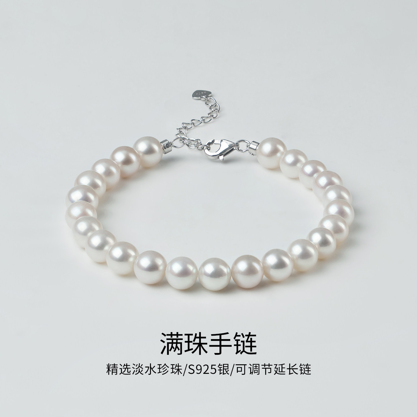 KEZ天然淡水珍珠手链手串女S925银可调节延长链官旗正品 送礼物