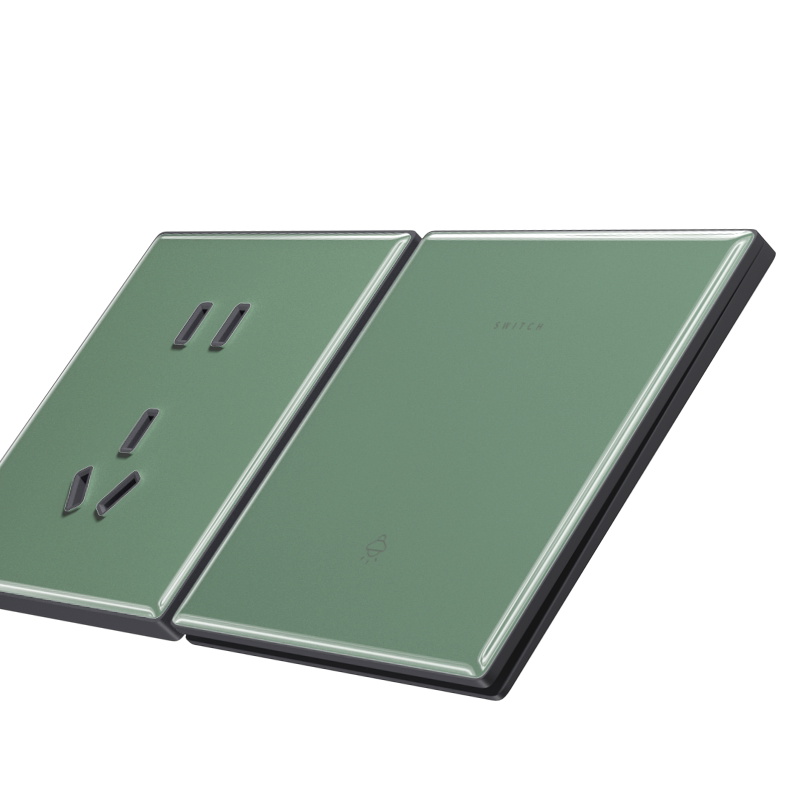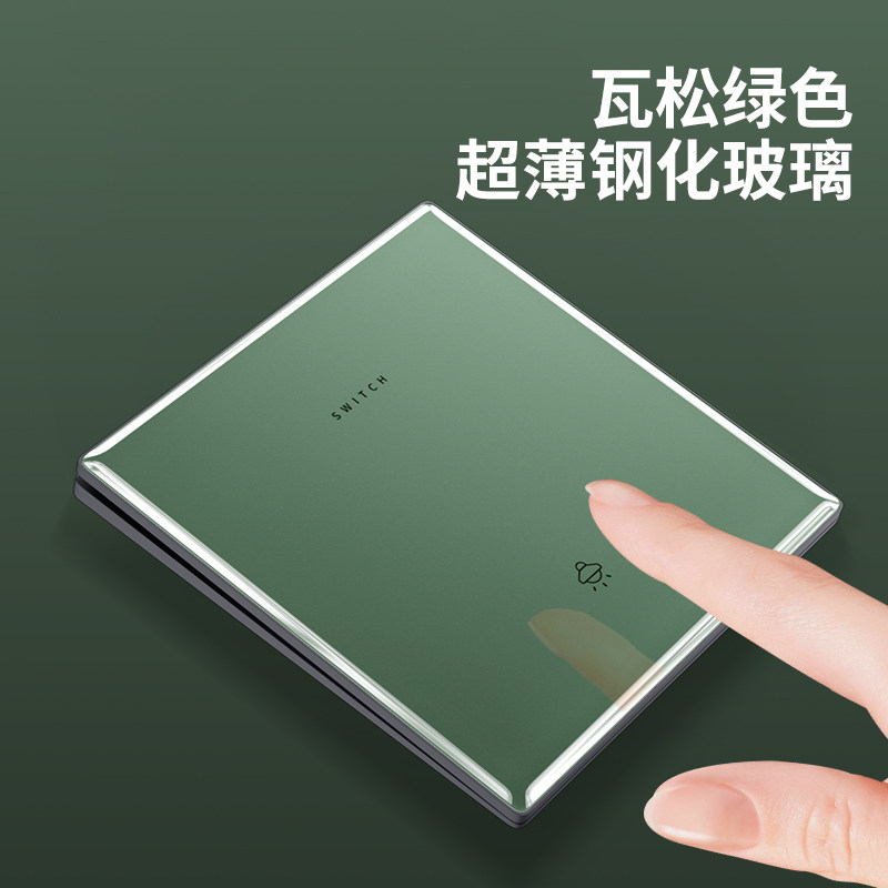 超薄瓦松绿钢化玻璃开关面板家用镜面简约一开五孔双控16A插座USB