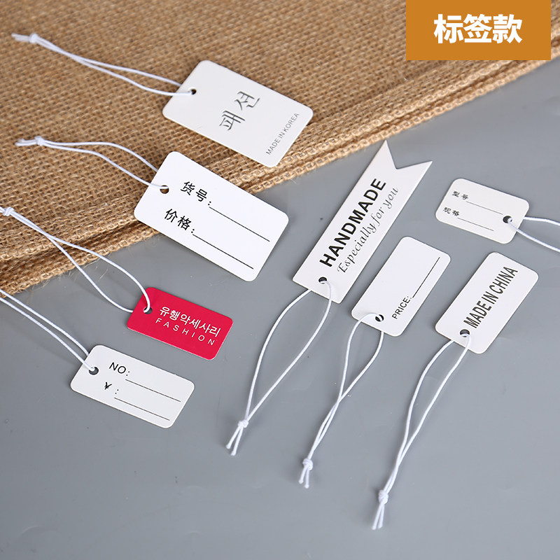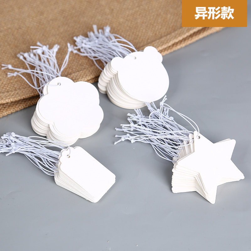白色吊牌带弹力绳空白小卡片价格标签牌穿绳挂牌白卡纸服装 包包商