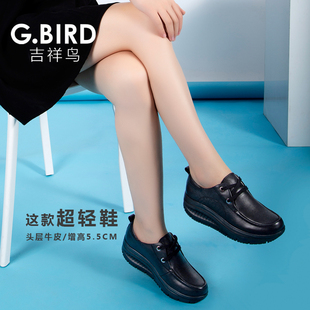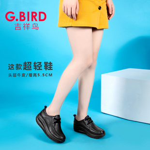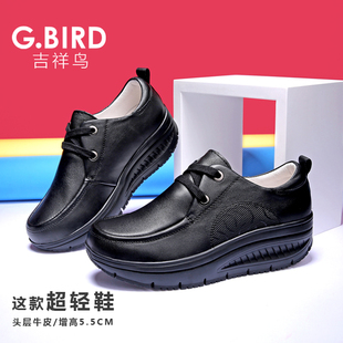 1008 真皮休闲百搭摇摇厚底松糕系带舒适健步鞋 吉祥鸟超轻女鞋 新款