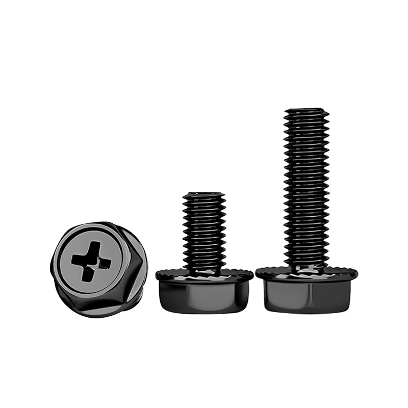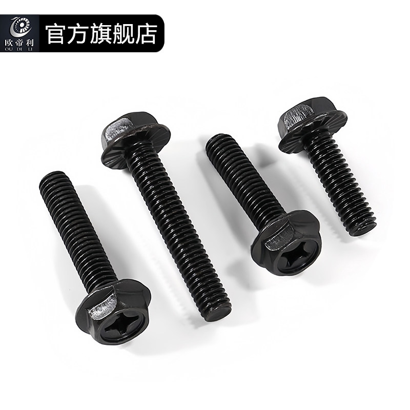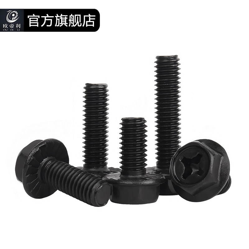 黑色法兰十字外六角螺丝面六角螺栓防滑带垫机丝法兰螺钉M4M5M6M8