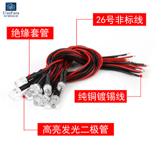 3mm 12V车船模型玩具车指示灯小灯泡LED灯珠 5mm发光二极管带线5V
