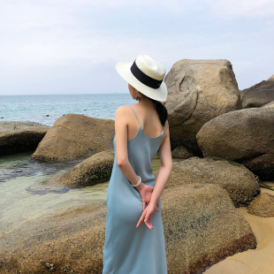 高级感法式 缎面吊带裙连衣裙女春夏仿醋酸高腰纯色内搭打底长裙