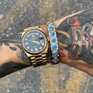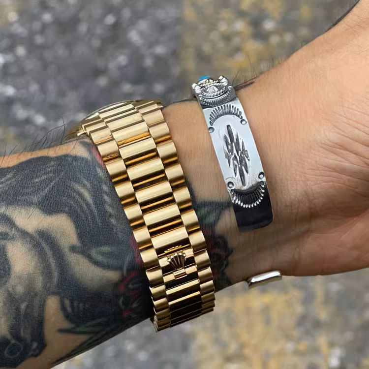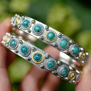 Dear 美国天然松石18K金金星金绳金钉印第安图腾复古手镯 Blossom