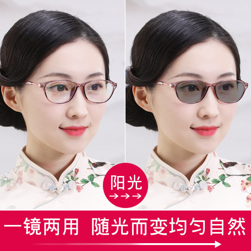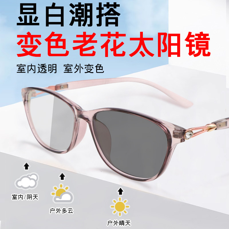智能感光变色老花镜墨镜一体女时尚 超轻减龄气质高清老光太阳眼镜