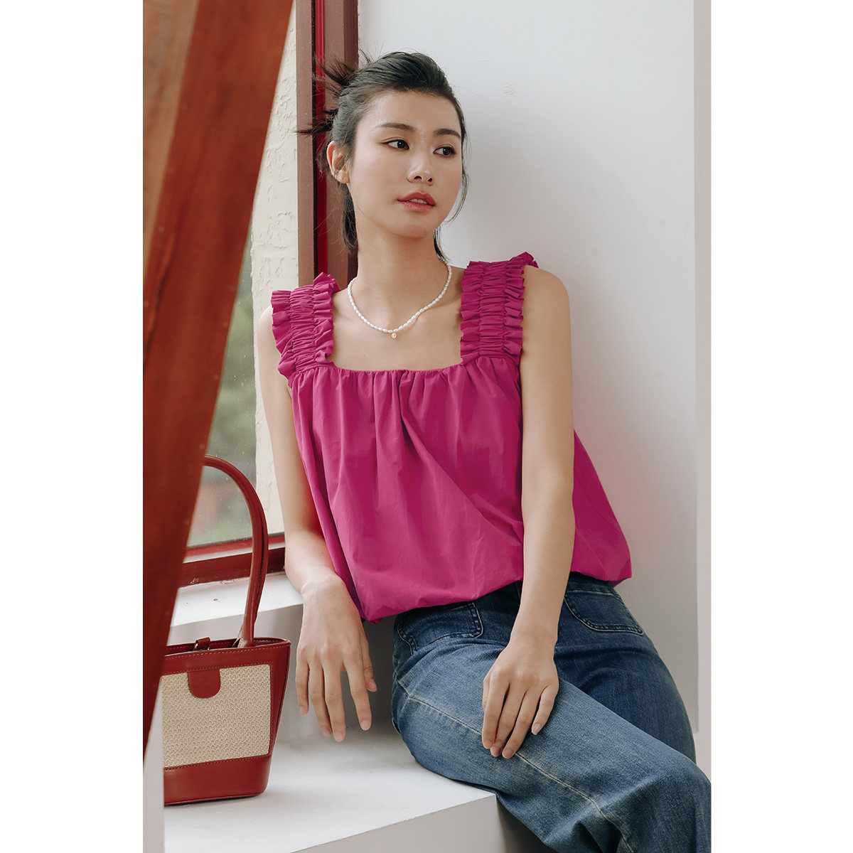 方领背心女外穿2025新吊带带胸垫内搭遮副乳工字宽肩打底无袖 上衣