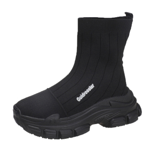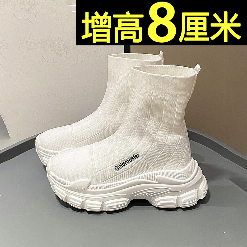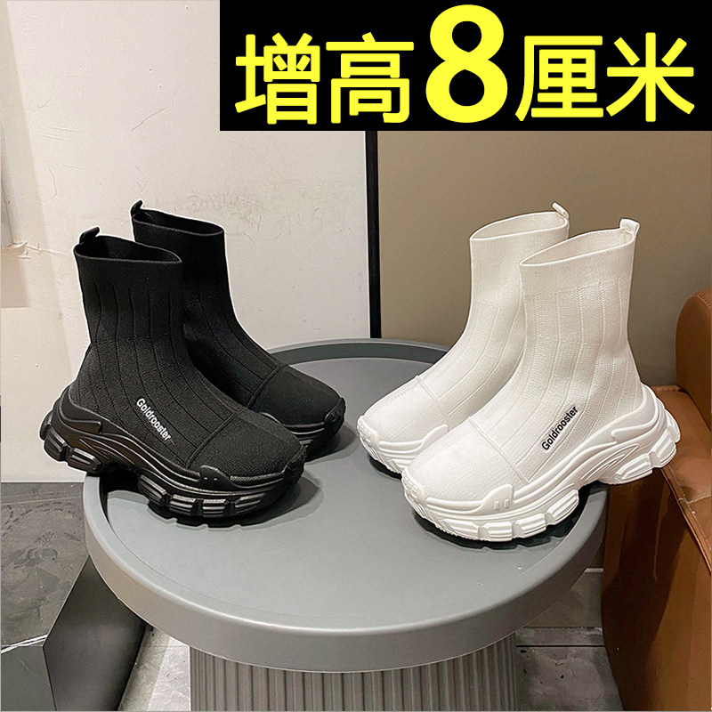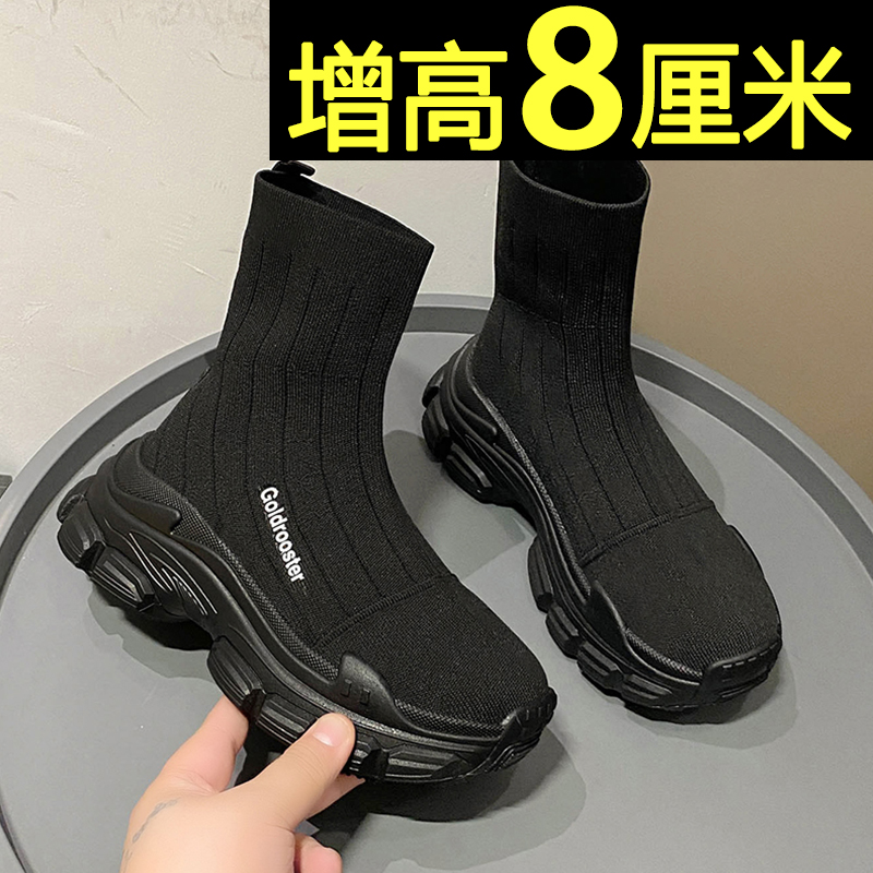 袜子鞋 厚底欧洲站小个子内增高休闲高帮鞋 女2026新款 黑色老爹鞋