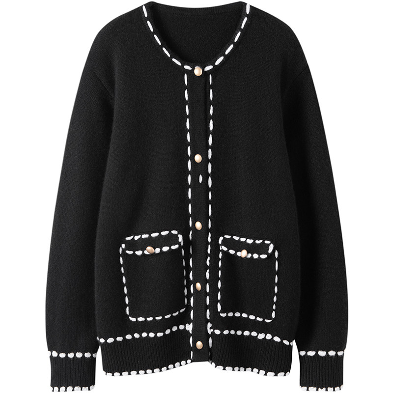 矜贵又洋气 女纯羊绒毛衣圆领秋冬外套 纯手工缝线加厚羊绒开衫