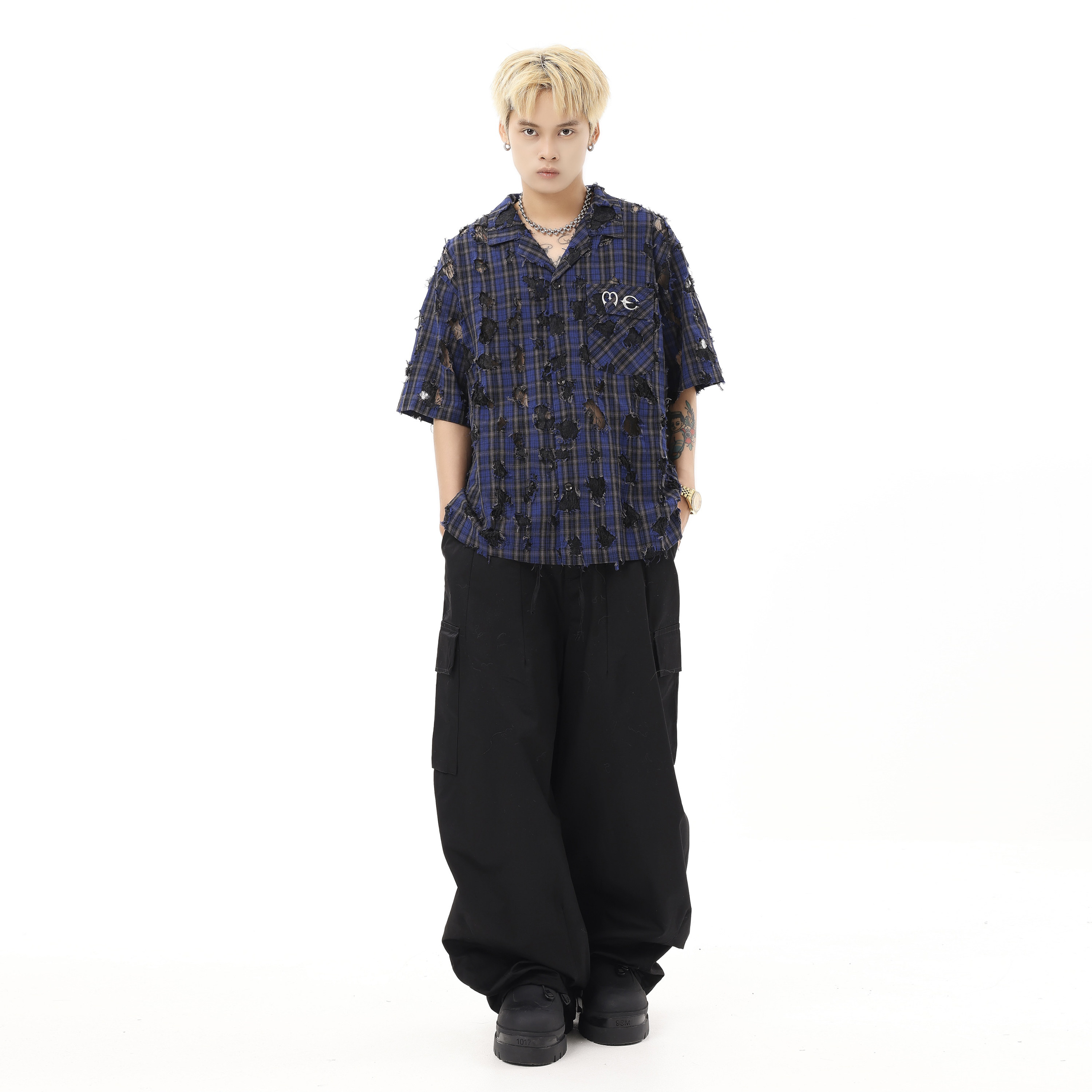 嘻哈阔腿拖地伞兵休闲裤 裤 潮 复古可束脚hiphop卡其色工装 BTSG美式