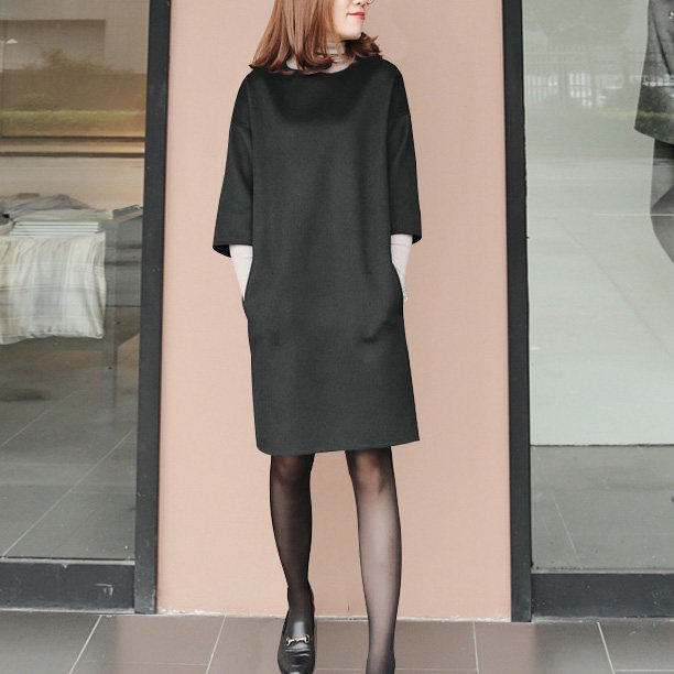 优雅气质一字领中长针织裙1203920 修身 HM女装 连衣裙冬季