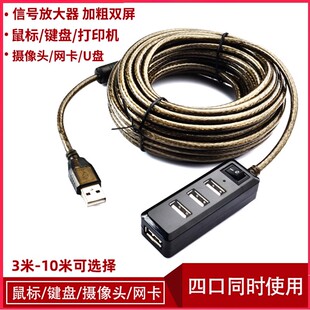 10米扩展器电脑带供电开关摄像头打印机鼠标键盘公对母加长数据线 usb延长线一拖四口分线器带电源线15 包邮
