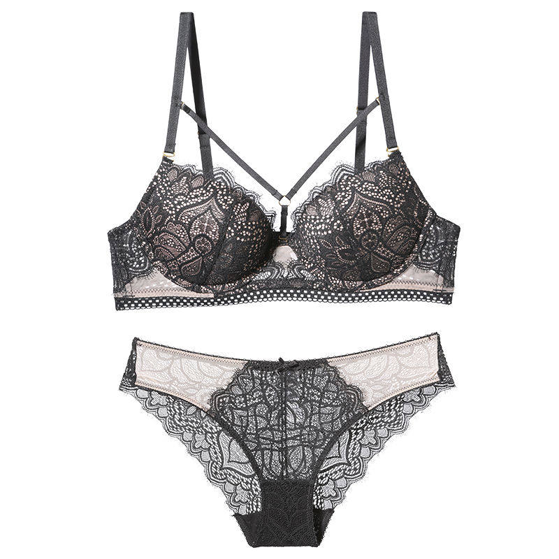 AH文胸套装 内衣女 美背性感蕾丝聚拢小胸罩显大防下垂交叉镂空厚款