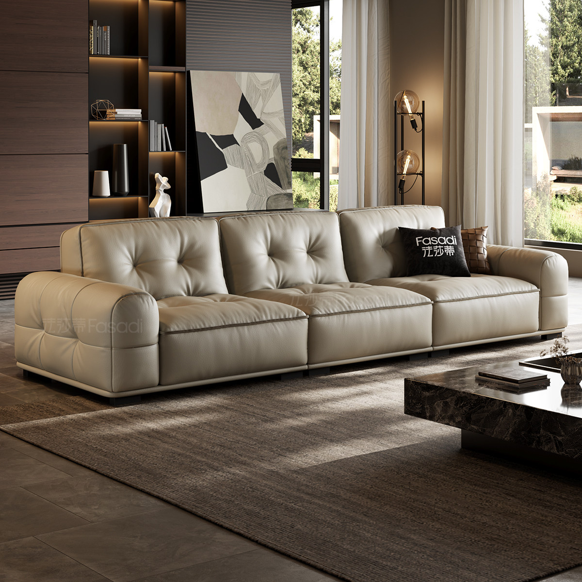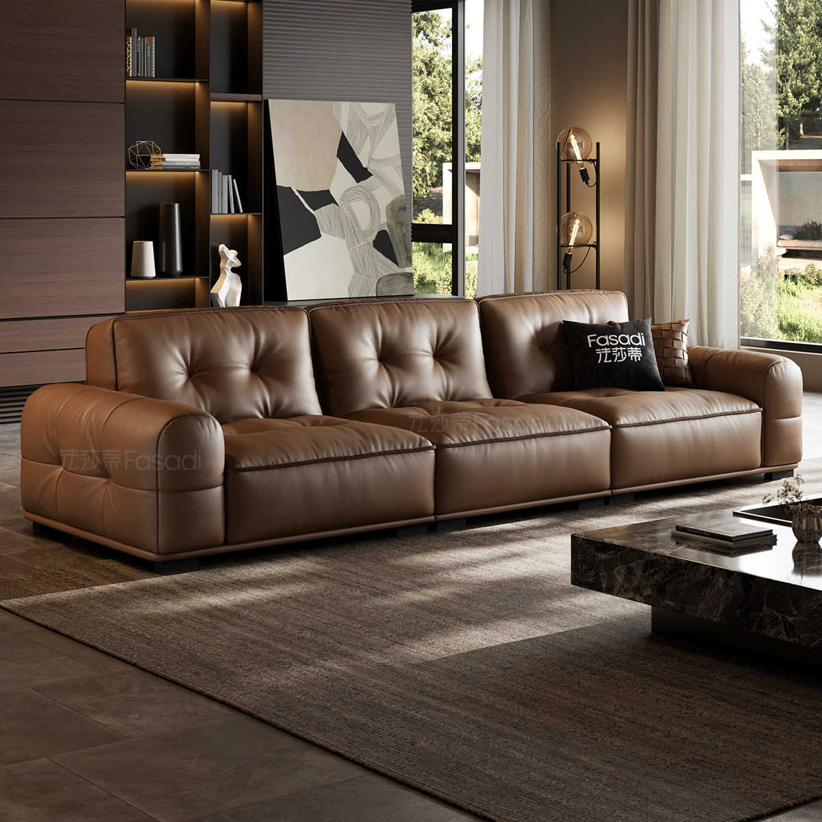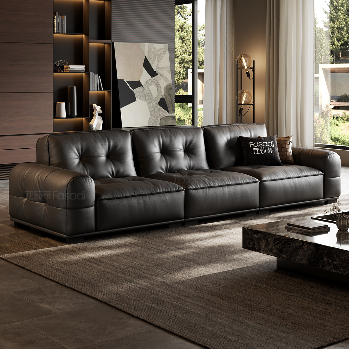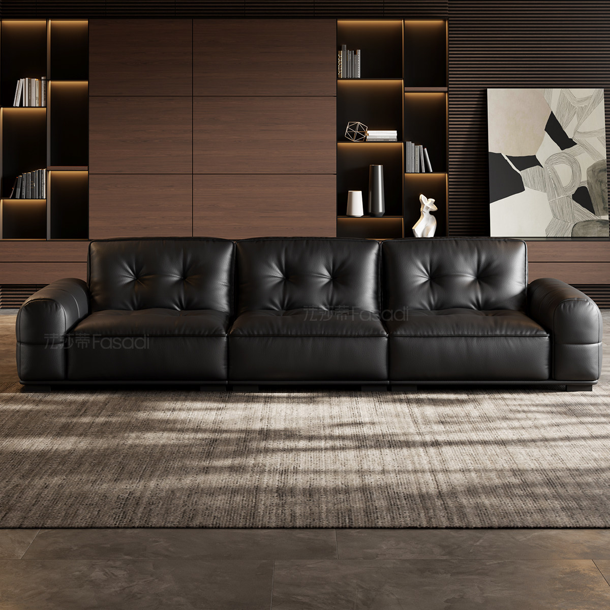 法莎蒂黑金刚沙发意式 客厅头层牛皮直排真皮组合2025年复古款