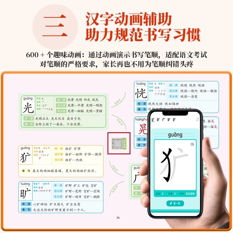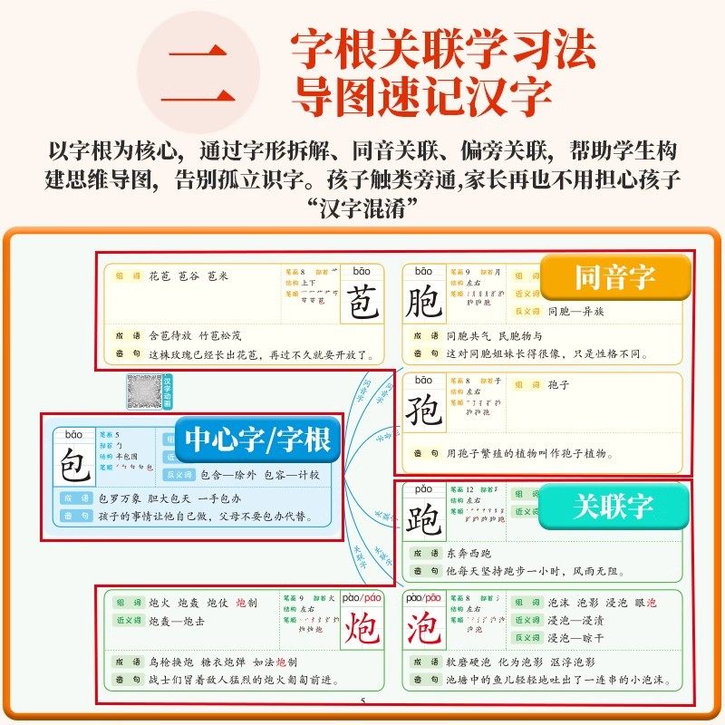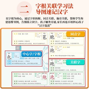 汉字宝典汉字速记训练手册思维导图小学语文汉字偏旁部首笔画笔顺讲解教程幼小衔接儿童小学生识字练字认字组词造句工具书 荣恒