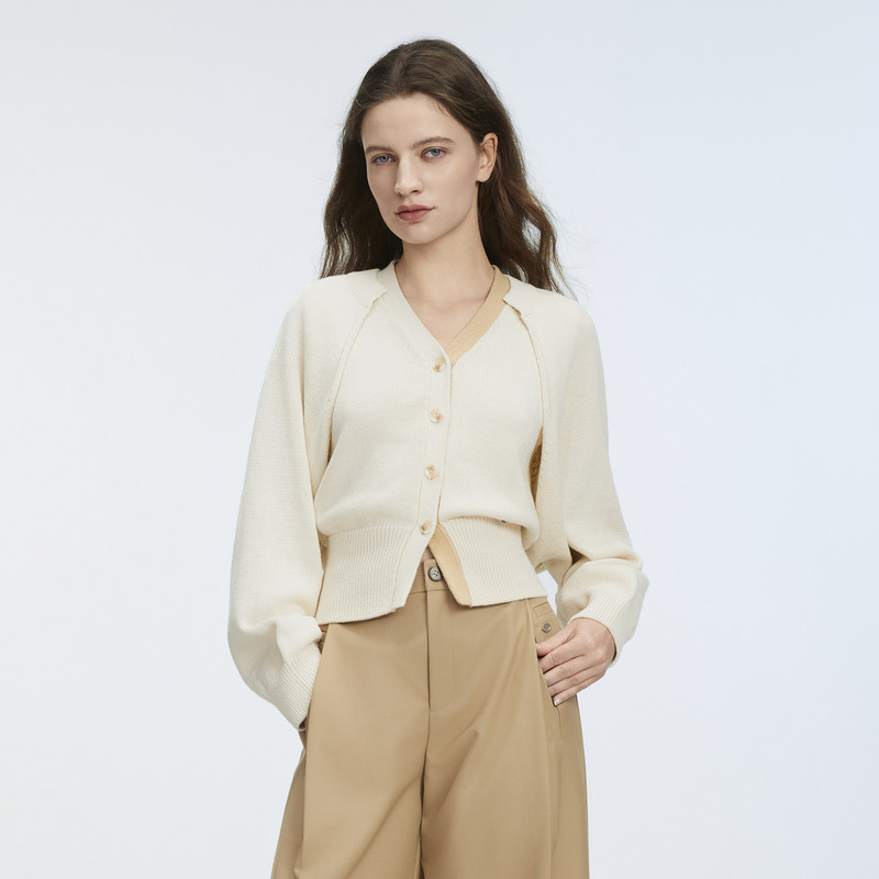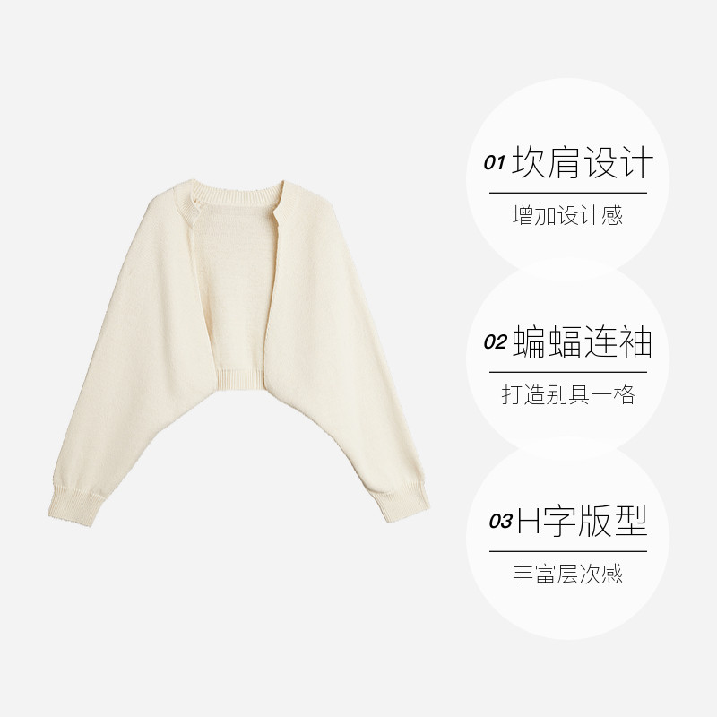 时髦蝙蝠袖 ELLE法式 针织开衫 女2025春季 慵懒软糯毛衫 新款 自营