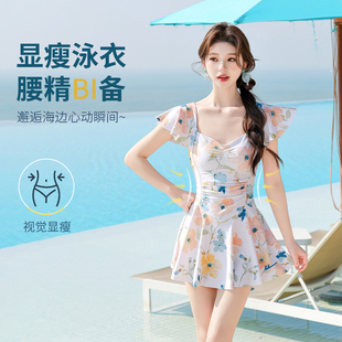 泡温泉游泳装 泳衣女士连体保守裙式 时尚 爆款 遮肚显瘦仙气2021新款