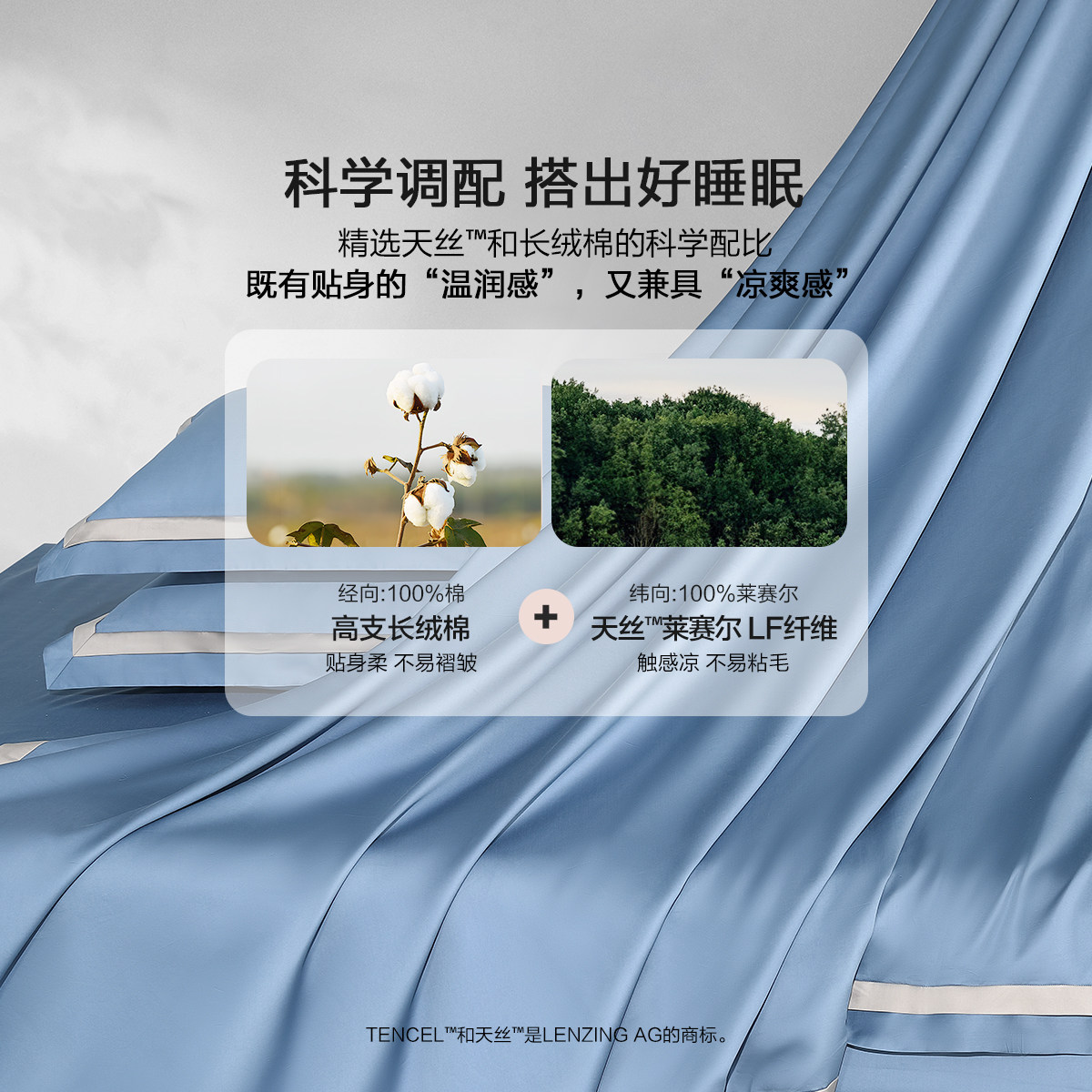 水星家纺60支天丝™棉四件套莱赛尔棉贡缎轻奢套件床单被套25新品