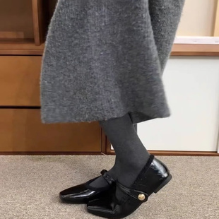 浅口女鞋 保暖平跟毛毛鞋 尖头水钻方扣内加绒平底单鞋 2025秋冬新款