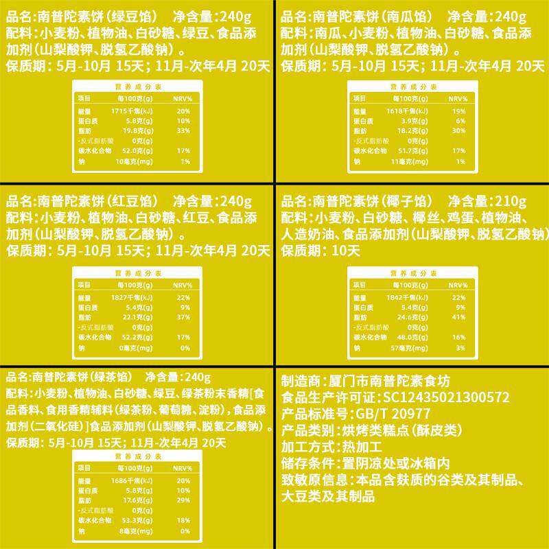 厦门特产南普陀寺素饼正宗鼓浪屿馅饼普陀山南瓜绿豆椰蓉饼伴手礼