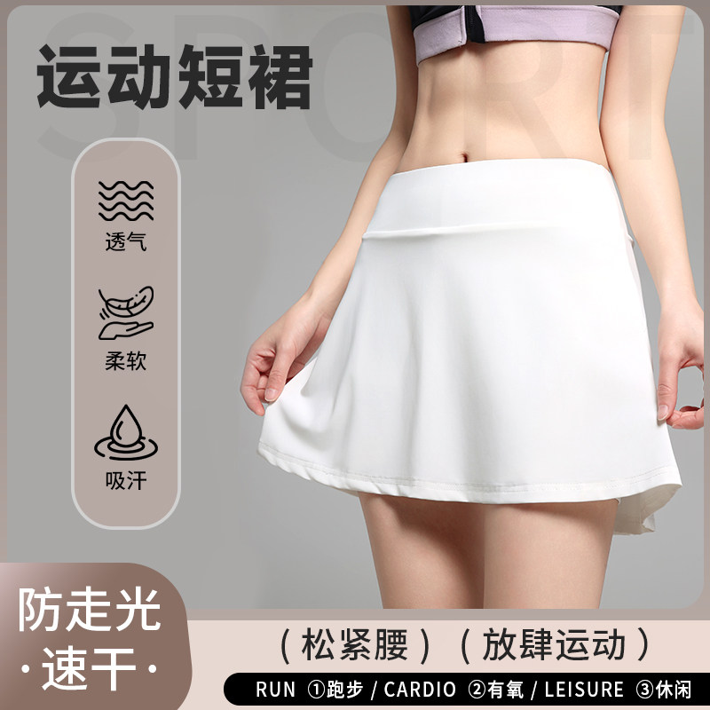 运动短裙女大码 有内衬白色百褶裙外穿跑步健身骑行马拉松 瑜伽裙裤