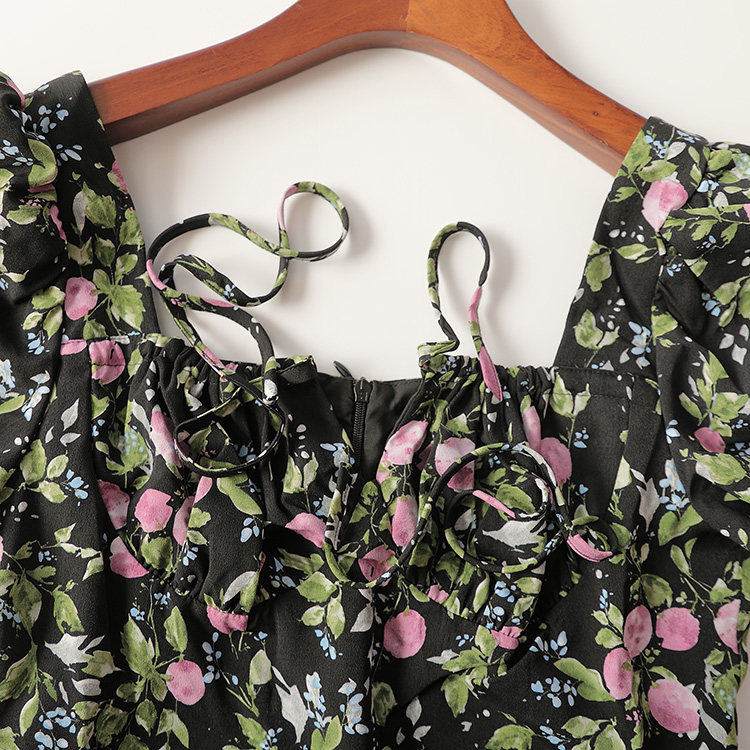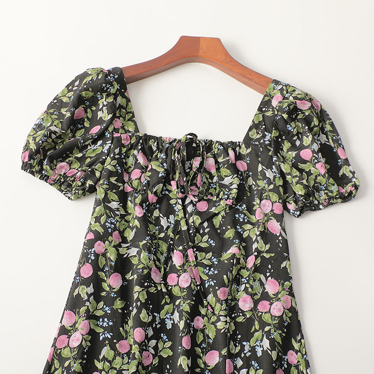 印花连衣裙 V领短袖 411150 夏加长款