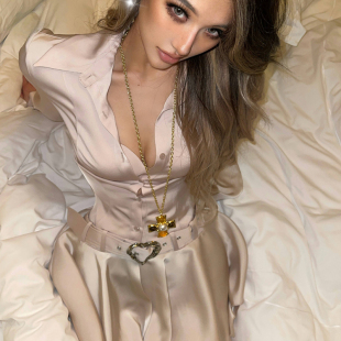 PrettyDragon缎面仿醋酸收腰百褶辣妹衬衫 连衣裙女春夏短裙 裙长袖