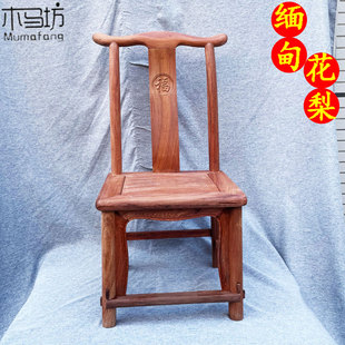 红木缅甸花梨木椅子小官帽椅靠背椅大果紫檀实木中式 茶几椅童椅凳
