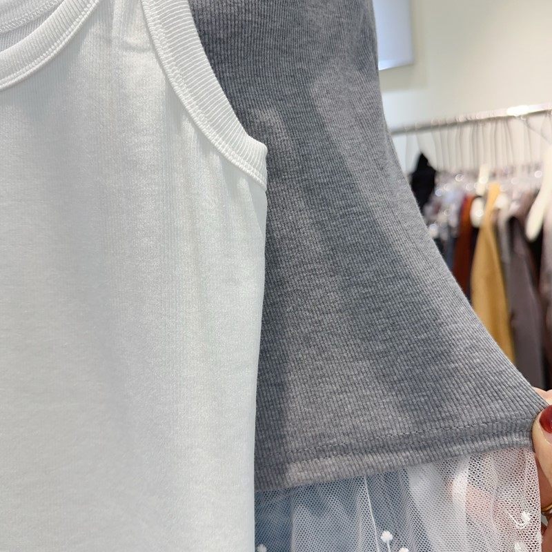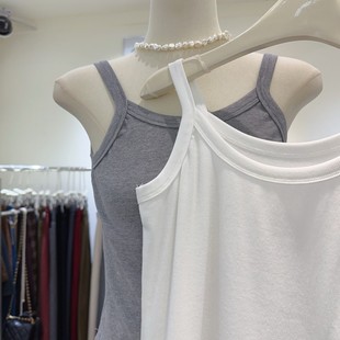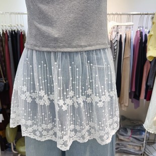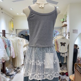 韩国流行潮款 内搭上衣 设计感蕾丝网纱小屁帘叠穿吊带背心中长款