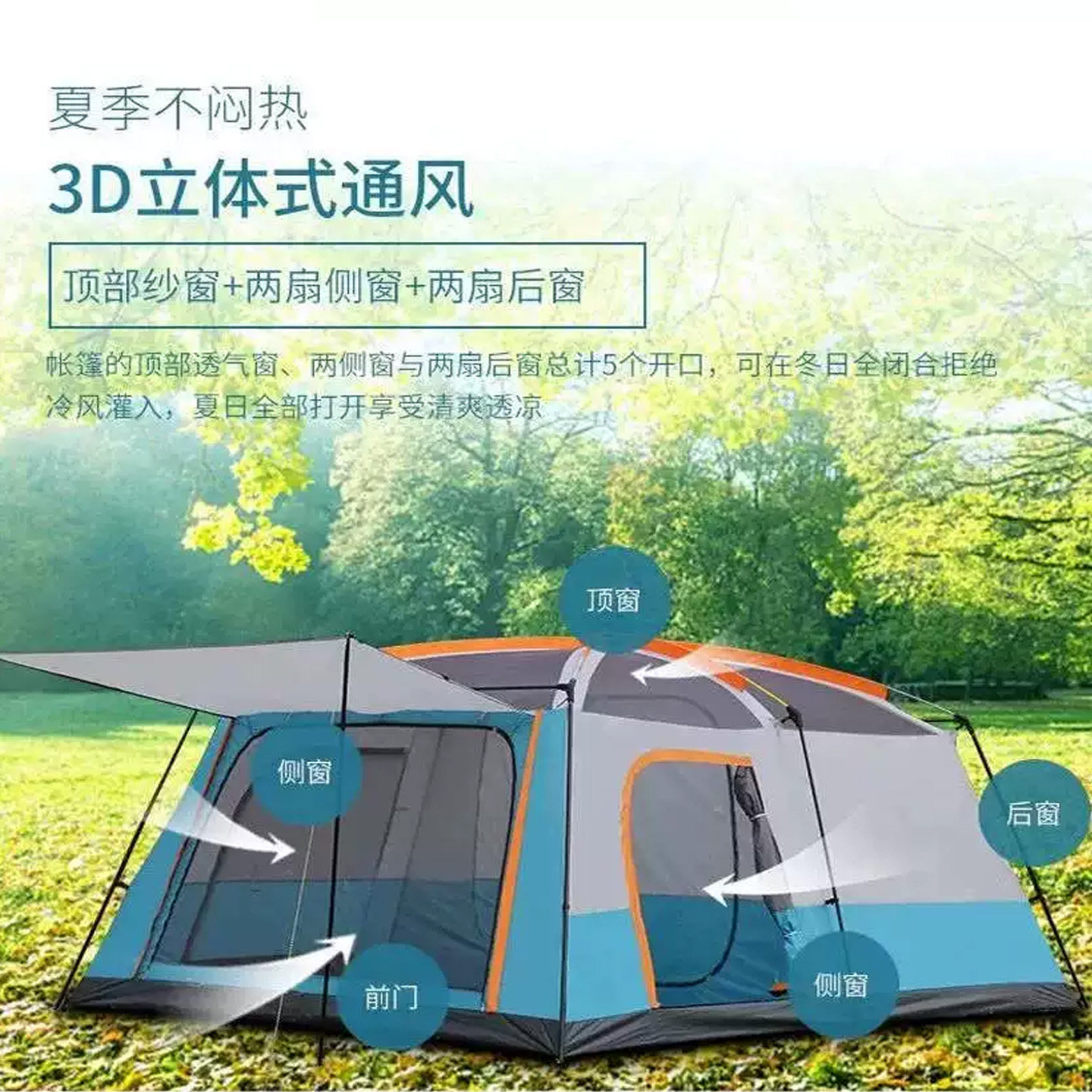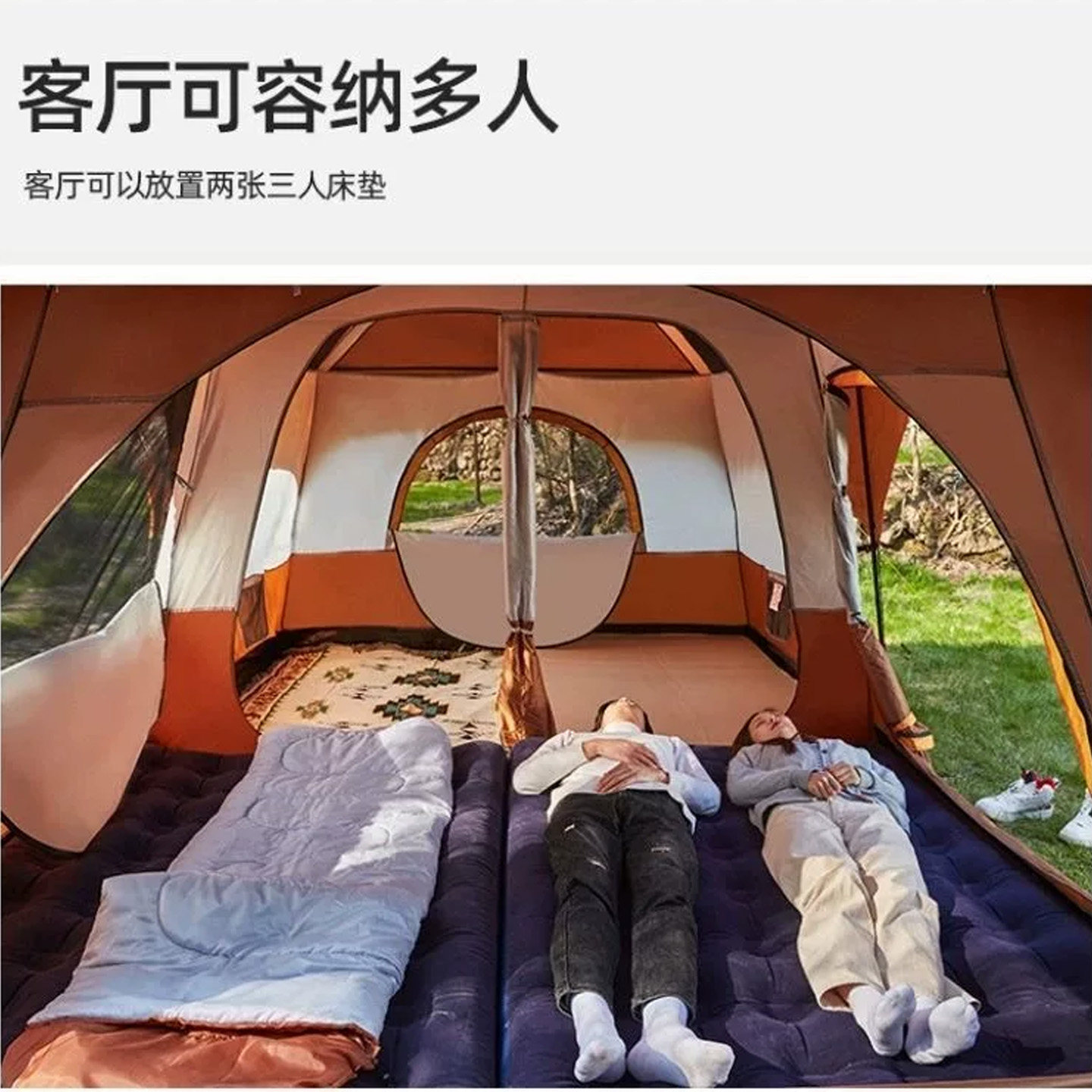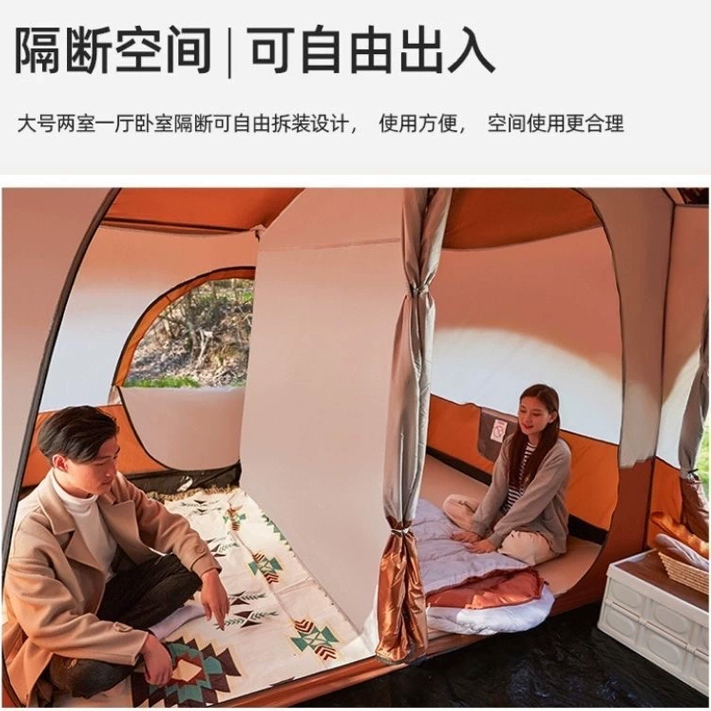 帐篷户外野营过夜两室一厅折叠便携式 备 加厚防雨野外遮阳棚露营装