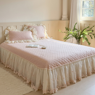 法式 全棉四件套纯棉高级感蕾丝花边少女被套床单 公主风夹棉床盖款