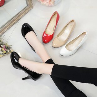 漆皮工作 女COS圆头女鞋 10CM高跟鞋 防水台性感细跟浅口单鞋