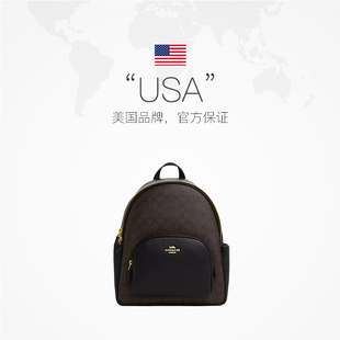 蔻驰女士中号COURT双肩包深棕色老花拼卡其色老花 COACH 自营