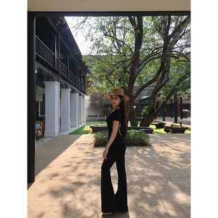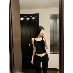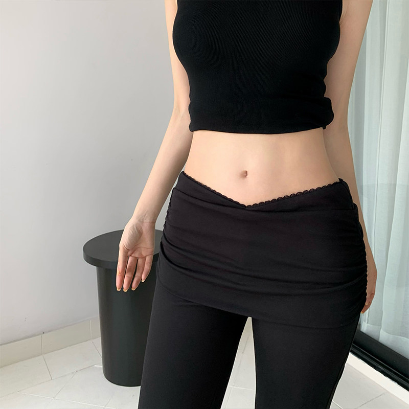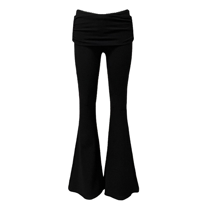 黑色v型低腰蕾丝显瘦百搭微喇休闲长裤 GYOKUU 2025ss