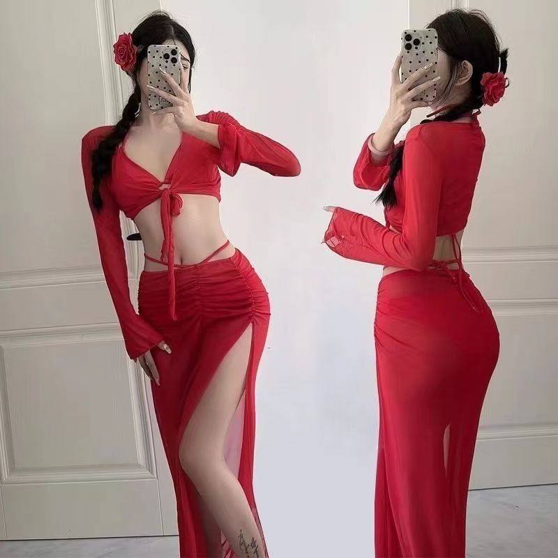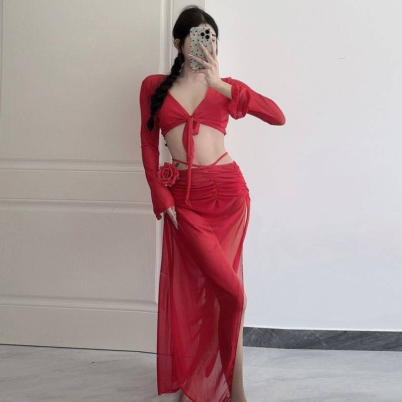 性感泳装 网纱罩衫 显瘦 比基尼长裙四件套分体泳衣女长袖 2025新款