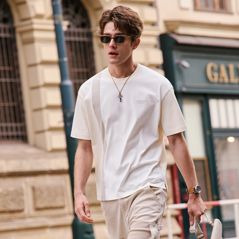 时尚 MrBu布先生撞色短袖 夏季 半袖 纯棉宽松T恤字母刺绣GT16389 新款