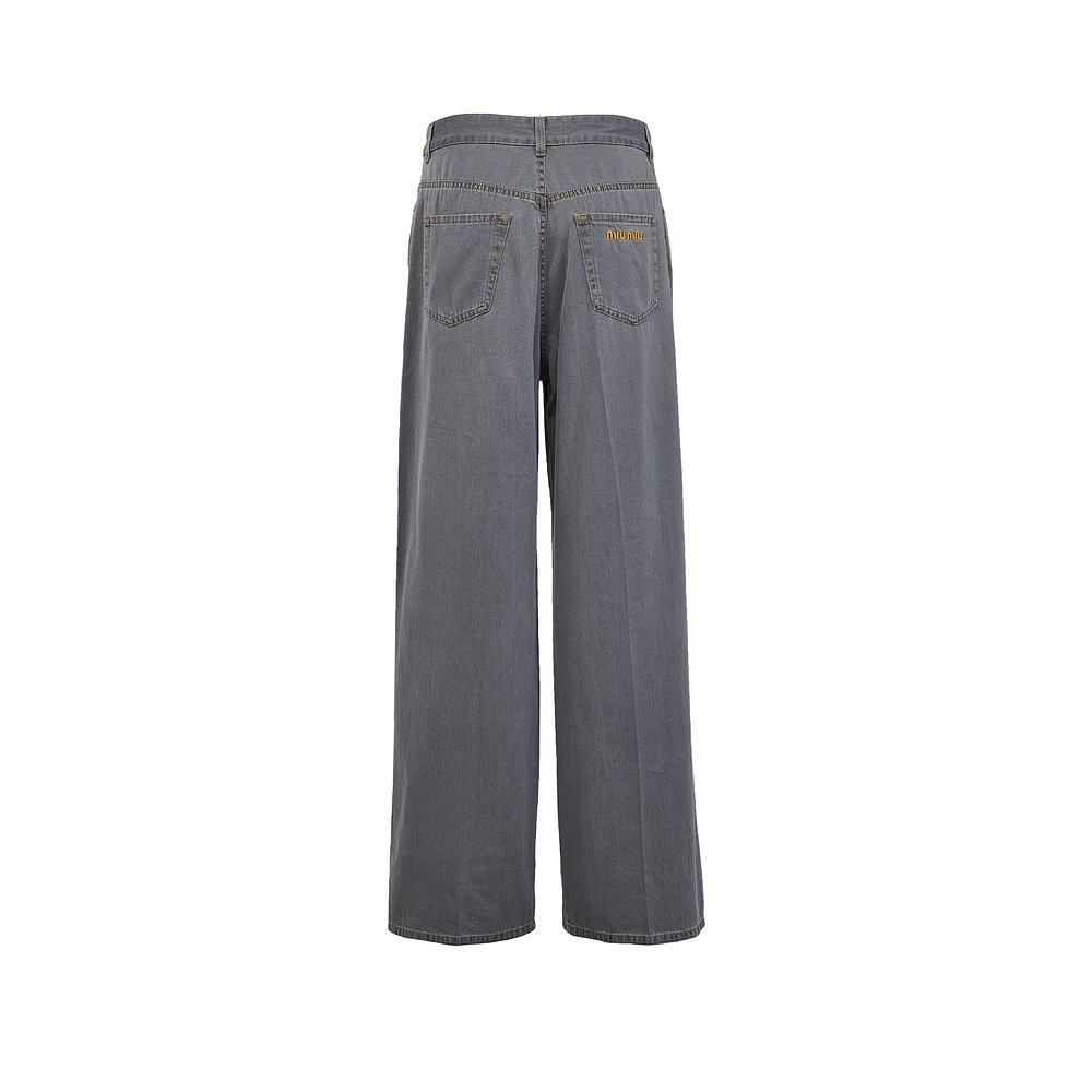 加绒加厚阔腿裤 高腰宽松窄版 子 女秋冬2025新款 灰色烫钻直筒牛仔裤