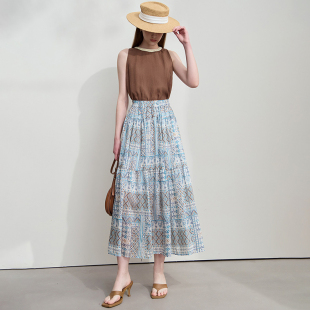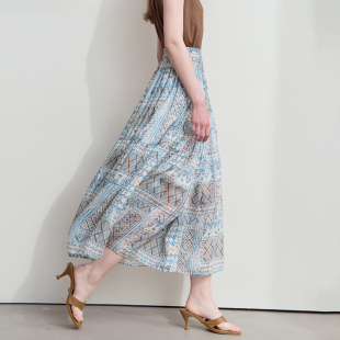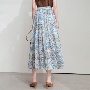 AMII 复古波西米亚印花雪纺A字长裙半身裙 莱赛尔印花半身裙