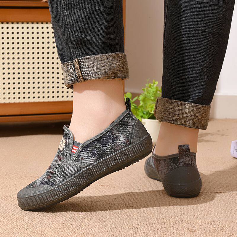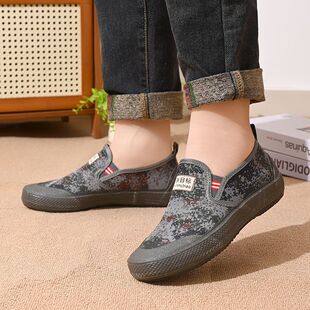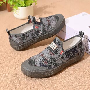 作训鞋 新款 防滑耐磨橡胶底建筑工地鞋 低帮帆布鞋 一脚蹬劳保鞋