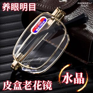 折叠老花镜老花眼镜正品 眼镜男中老年老花水晶可折叠高档玻璃高清