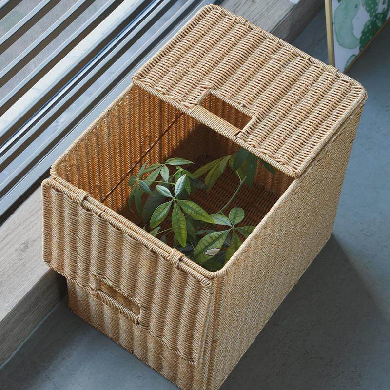 热销V3FPKens容量家用收纳箱仿藤编卧室衣物被子储物整理箱脏衣篮