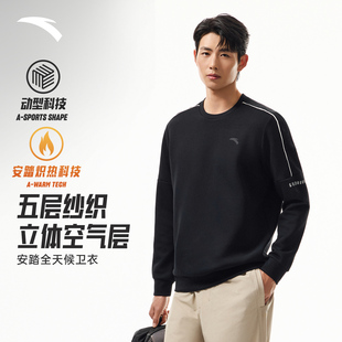 加绒长袖 安踏易打理卫衣 百搭圆领套头衫 冬季 上衣 针织运动服男士