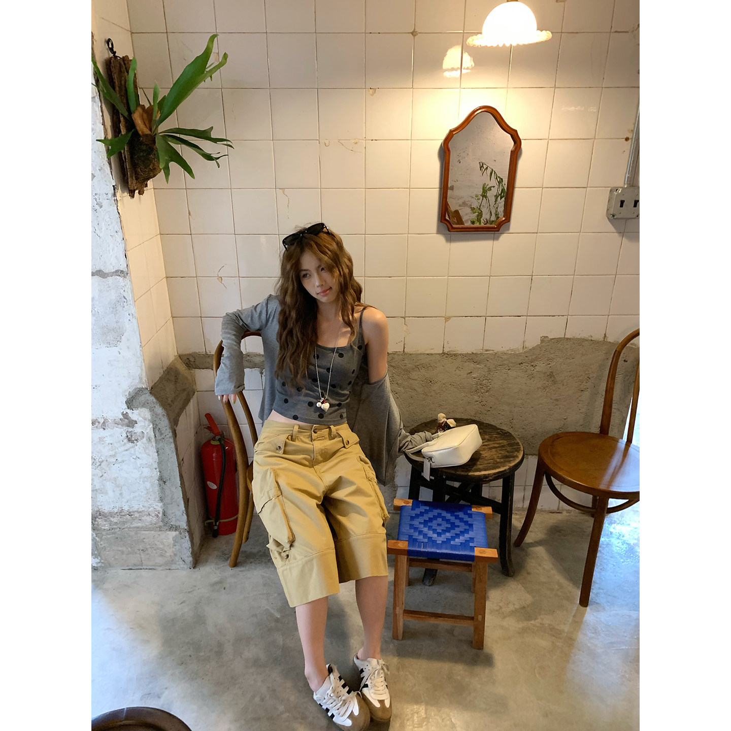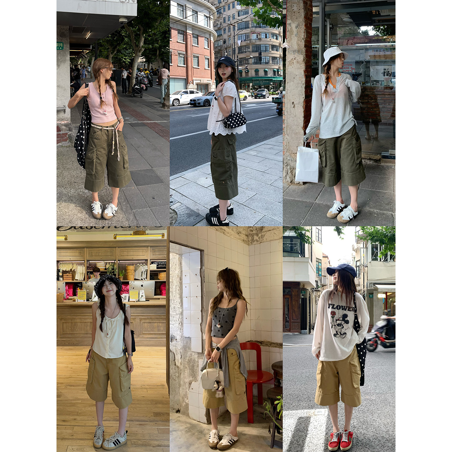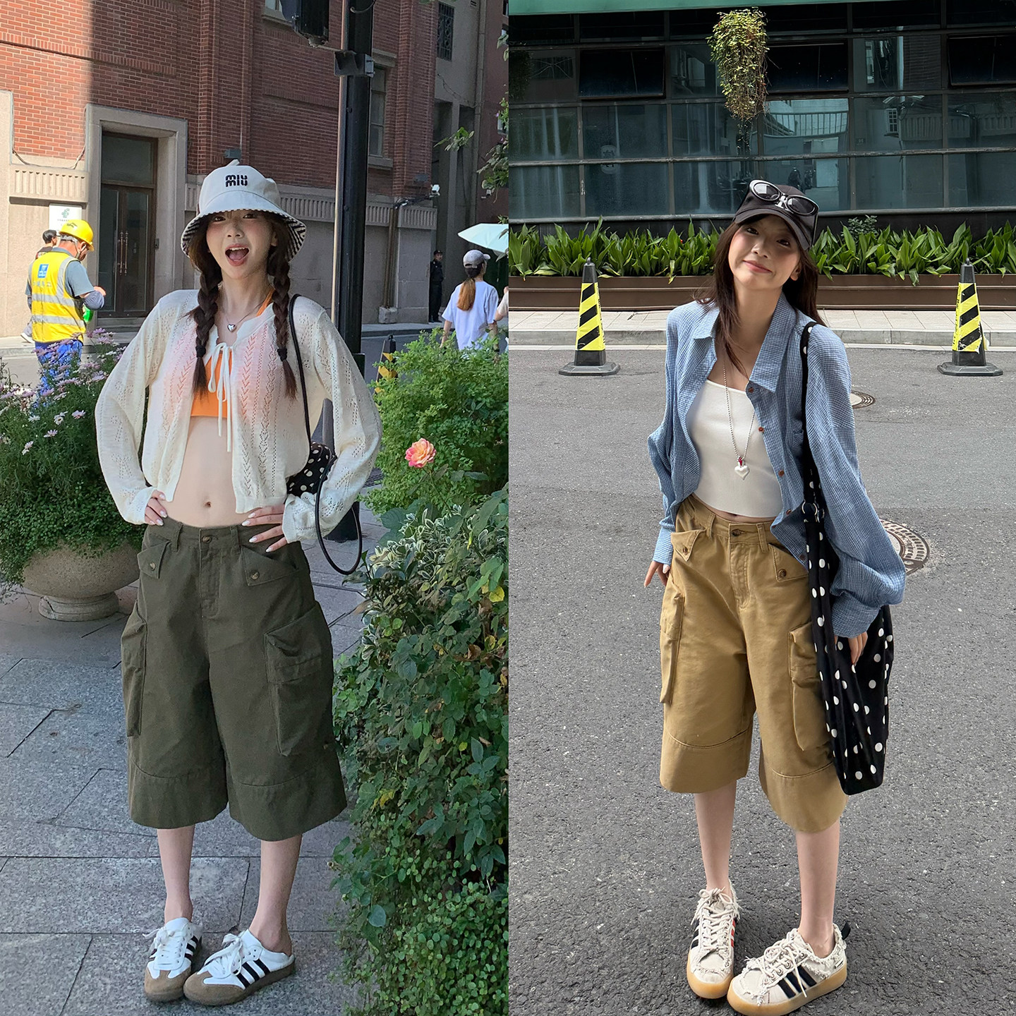 洗水工装 ins风直筒阔腿休闲五分短裤 中裤 新款 女 2025夏季 荒荒家