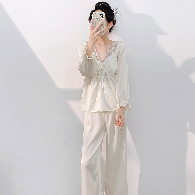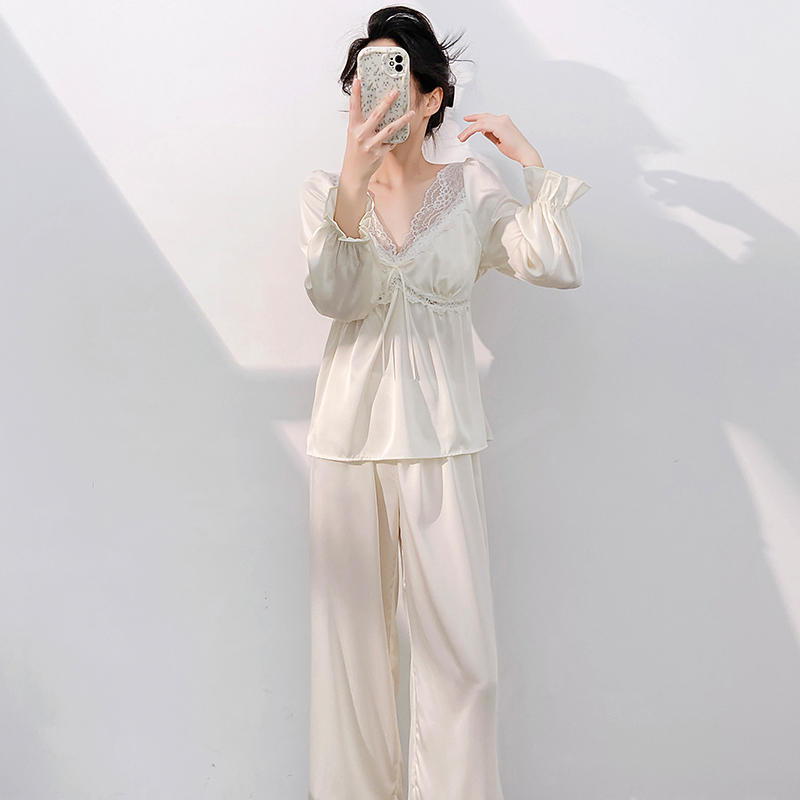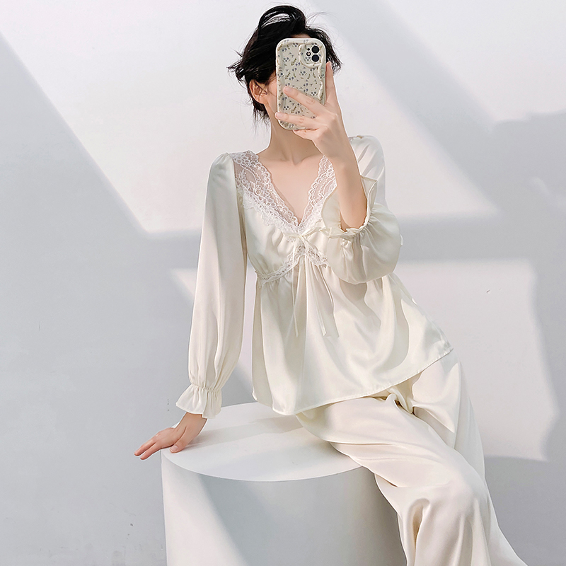 法式 睡衣女冰丝长袖 性感蕾丝甜美公主可外穿家居服 新款 2025夏季