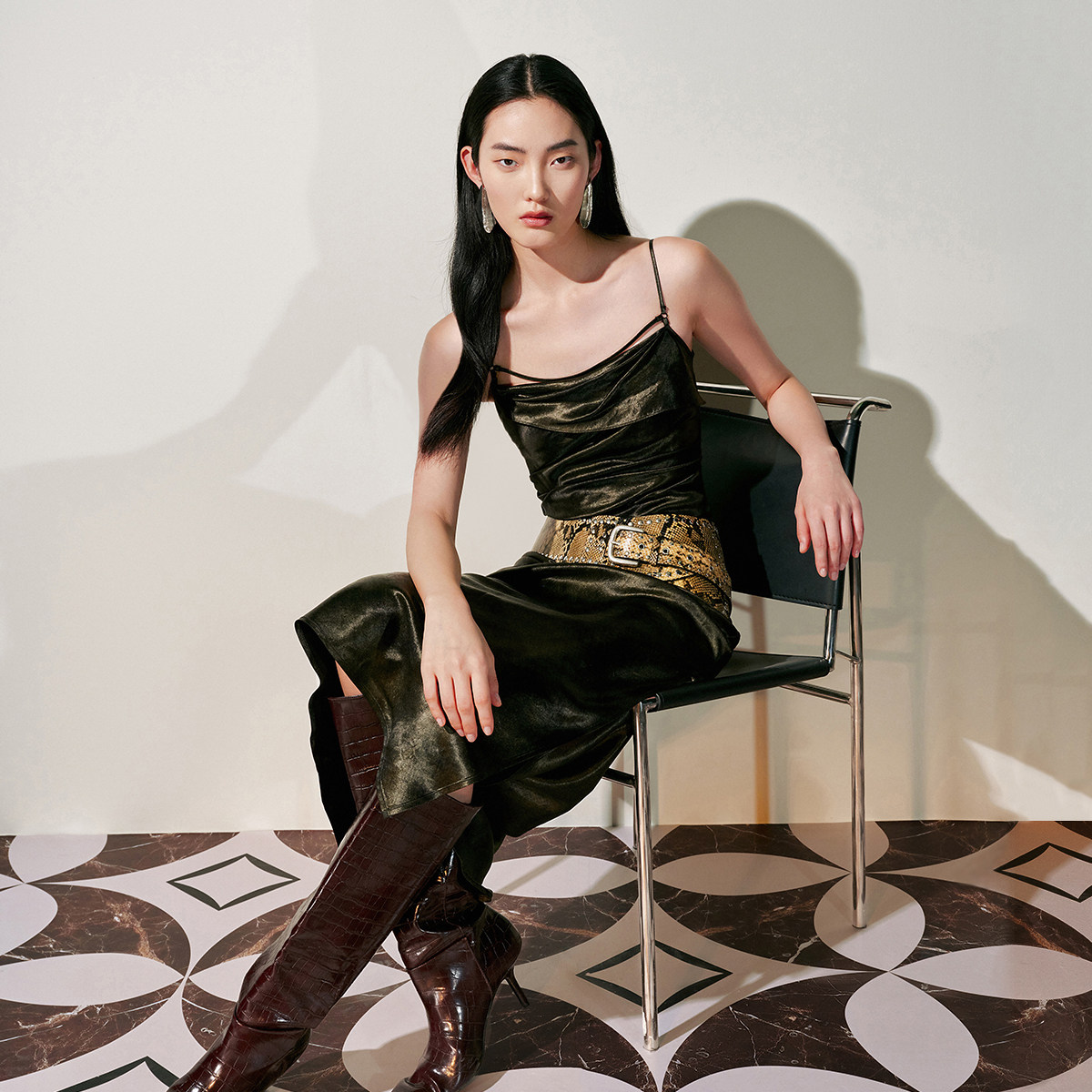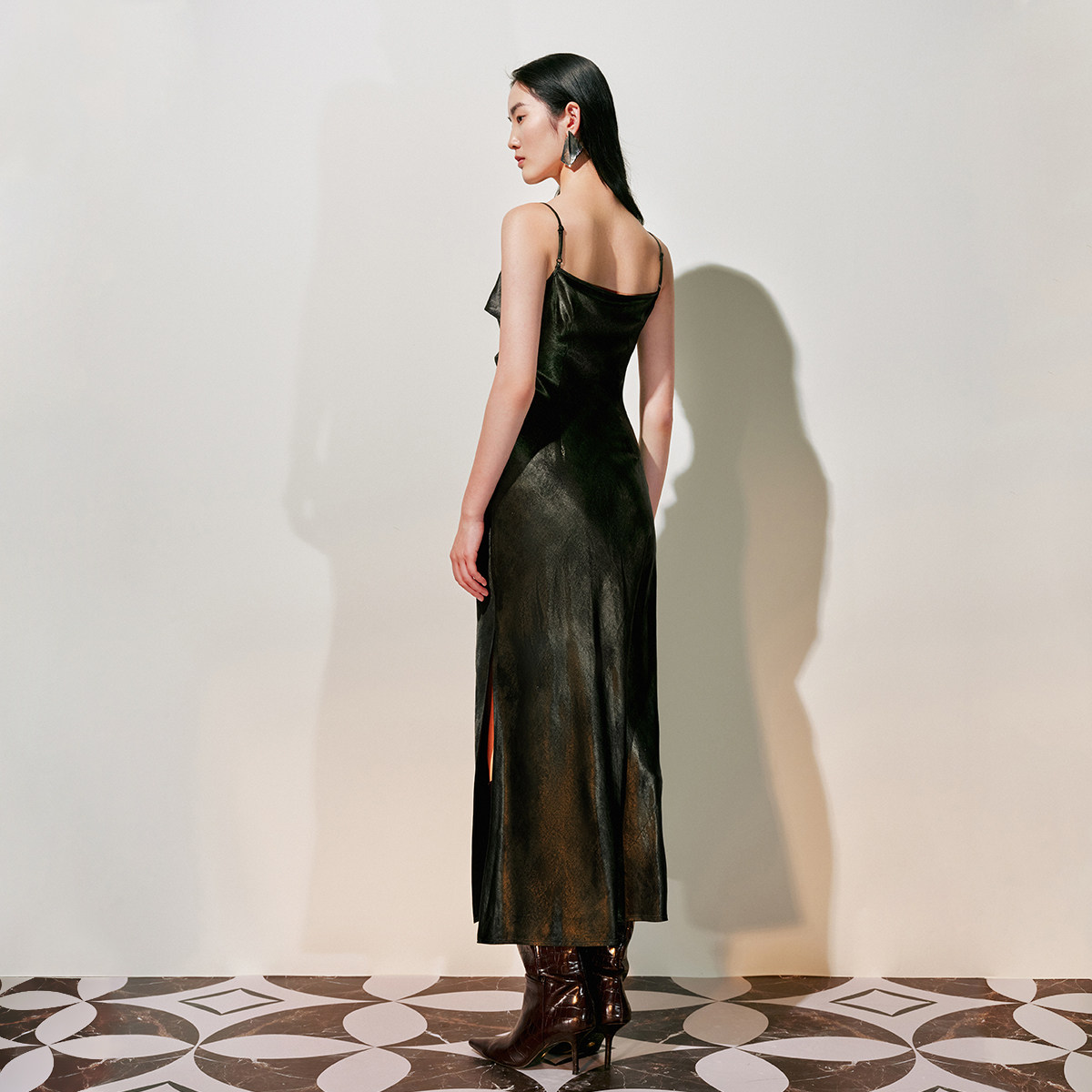 优雅 醋纤光泽感捏褶收腰吊带裙时尚 Vero Moda奥莱连衣裙春夏新款