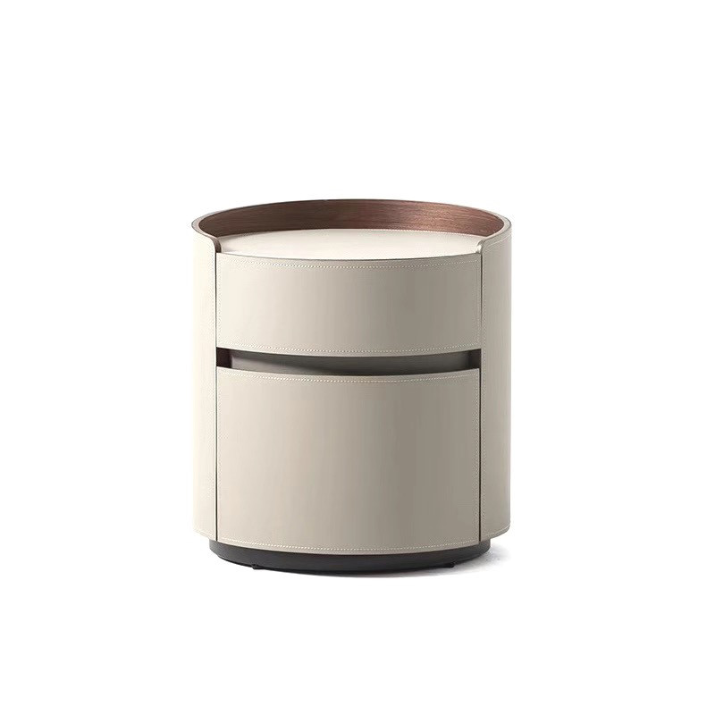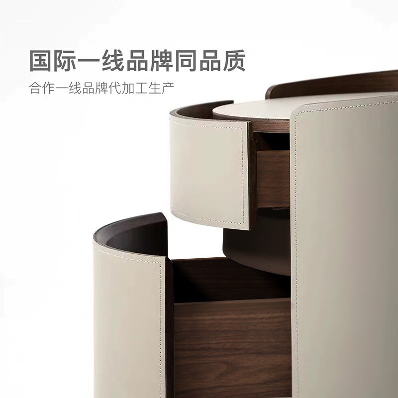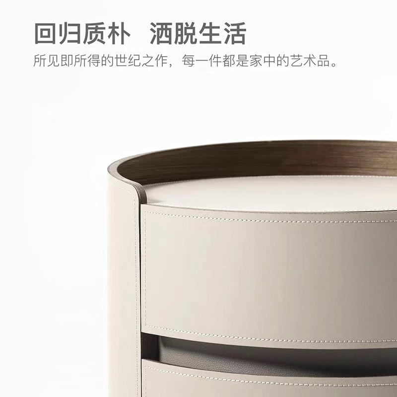 2025新款 床头柜高级感马鞍皮全实木简约现代收纳储物沙发柜轻奢