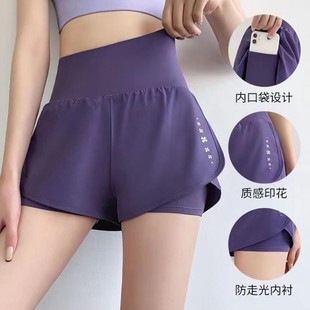 运动 平角透气女生跑步短裤 泳裤 高腰假两件防走光漂流速干双层泳装